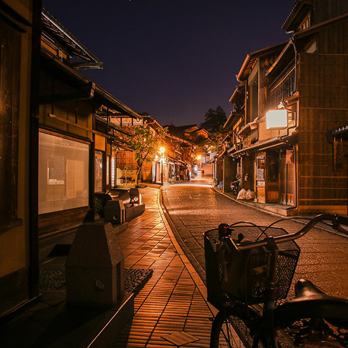 石畳の道に格子戸の家並みが続く、歴史薫る茶屋街。夕暮れには灯籠が灯り、まるで江戸時代に迷い込んだような幻想的なひとときを味わえます。